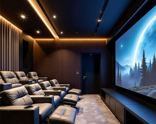 W e specialize in designing immersive home theaters and private cinema rooms that deliver a true cinematic experience. Every aspect—from room acoustics and speaker placement to projection and calibration—is meticulously planned for maximum realism and comfort.